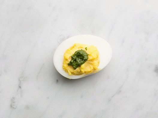 Pro klasickou verzi odstraňte žloutky z hotových vajec a promíchejte s majonézou, dijonskou hořčicí, solí a pepřem.